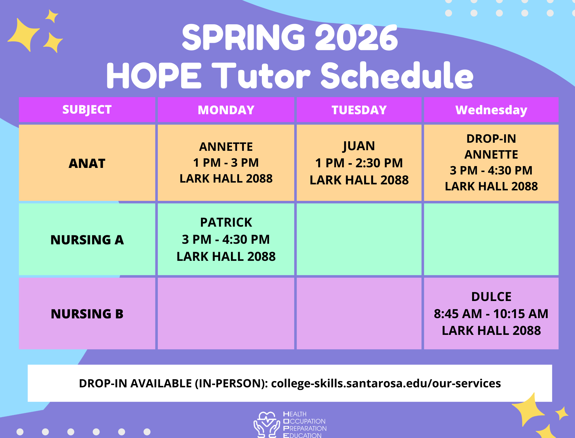 Here are schedules for on-campus tutoring for FALL 2025.