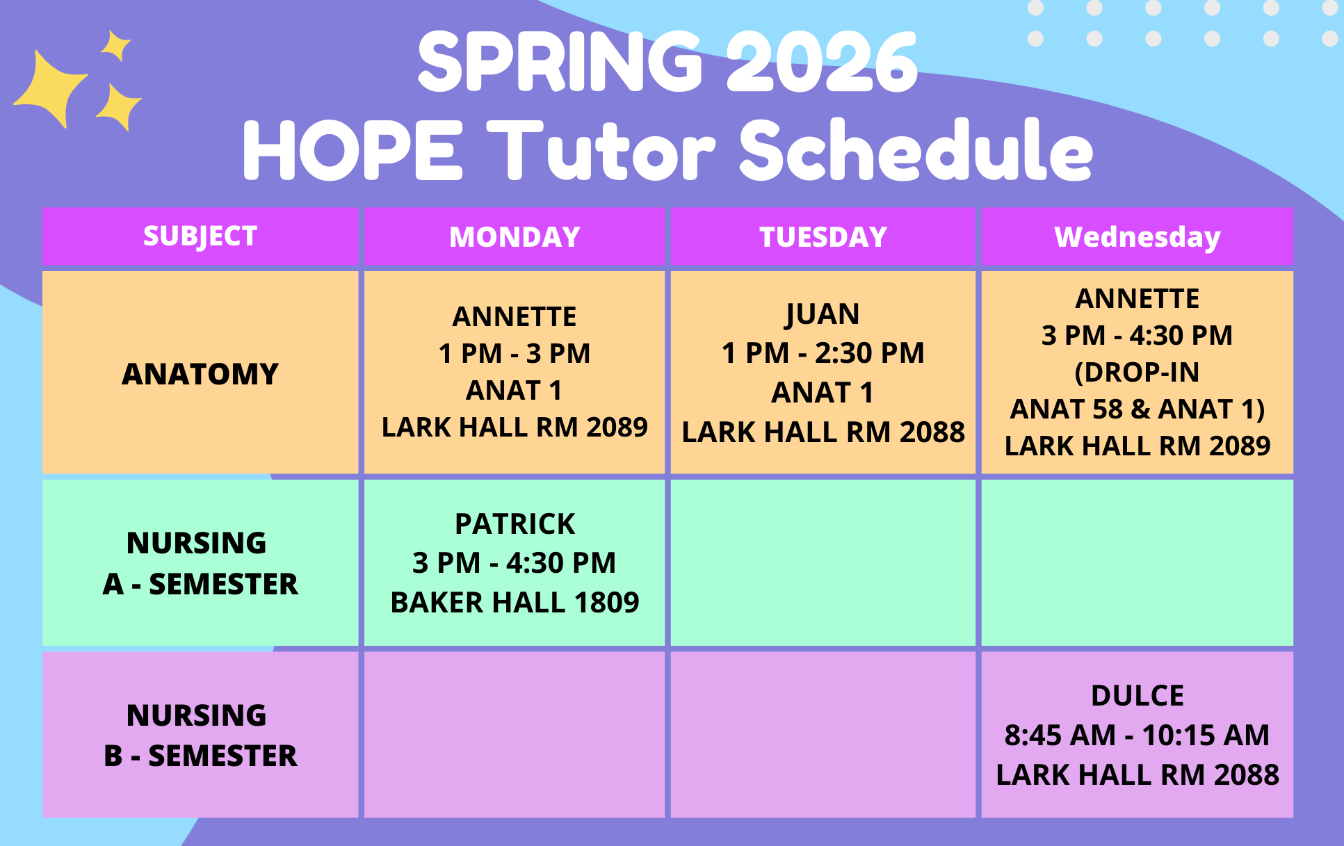 Here are schedules for on-campus tutoring for SPRING 2026-----------------------------------------------------------------------------------------------